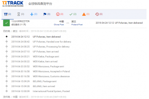 泰嘉物流國際郵政小包【香港掛號】4月份簽收時效。